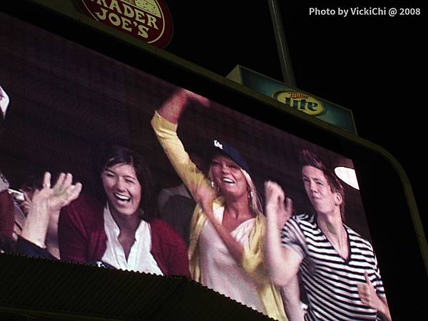 到了比賽中場休息時,全場觀眾紛紛一起歌,感覺是道奇球隊的歌…,大家唱完歌還為了幫道奇加油,全場觀眾還來個波浪舞!!!