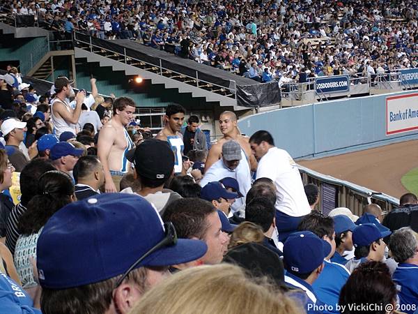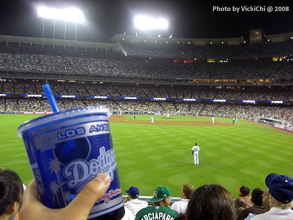 不過,這場球賽Dodger其實打的有點糟,簡直被Marlins痛宰一頓。比賽的時候,有顆棒球飛到我們這個方向,站在我們前面的美國球迷紛紛戴起他們自己準備的球套站起來接球,最後坐在我前面的大男孩接到球,原本他想把球留下來做紀念的,結果所有人都圍在他身邊嗚嗚嗚嗚嗚嗚嗚嗚的叫,就像人工環繞音響,因為受到強大的壓力,他最後只好把球丟回球場上。