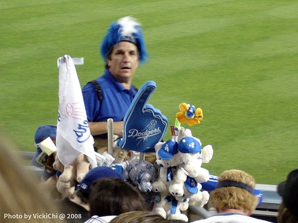 觀眾席上也有販賣道奇球隊應援物的大叔,可以隨時跟他購買道奇的吉祥物或是手套。