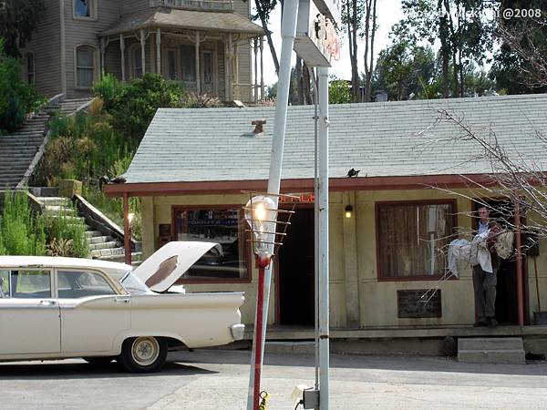 車子經過美國恐怖電視劇《貝茲旅館》(Bates Motel)的拍攝場景,這次出現的是一個男人抱著女人的屍身放進車子的後車廂。然後就會從身上拿出假刀假裝衝向我們的情節,這是在片場唯一有演員跟我們互動的。