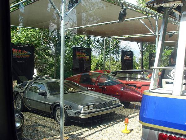經過擺放所有電影使用的車子,每台車子的背後都會有電影名稱的背板。嗯,我連背板上的電影都不太熟悉,就不用提到這些車子。不過有幾台車子真的很拉風!