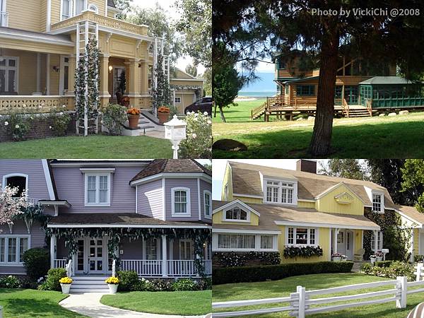 接下來,片場有很多棟看了就很心動的漂亮房子,這些房子大多出現在美國影集,雖然很漂亮但我接觸的影集太少,所以沒有熟悉感。有場景感覺就像在海邊的房子,海邊也是搭建起來的,實在太神奇了!一邊是海邊一邊則是比基尼女郎廣告招牌。