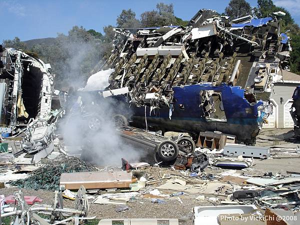 湯姆克魯斯主演的《世界大戰》(War of the Worlds)的空難現場佈景,雖然是佈景,飛機是特別購買退役的飛機,然後切成小塊運到片場,當下搭配周遭的音效,看到實在太令人震撼。