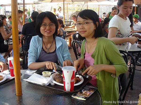玩到這裡也有點餓,點一份套餐,餐點夠我和Chris平分,嘻嘻。