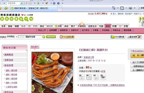 後來我發現博客來也賣起了雞腳,博客來的生意越做越大囉!