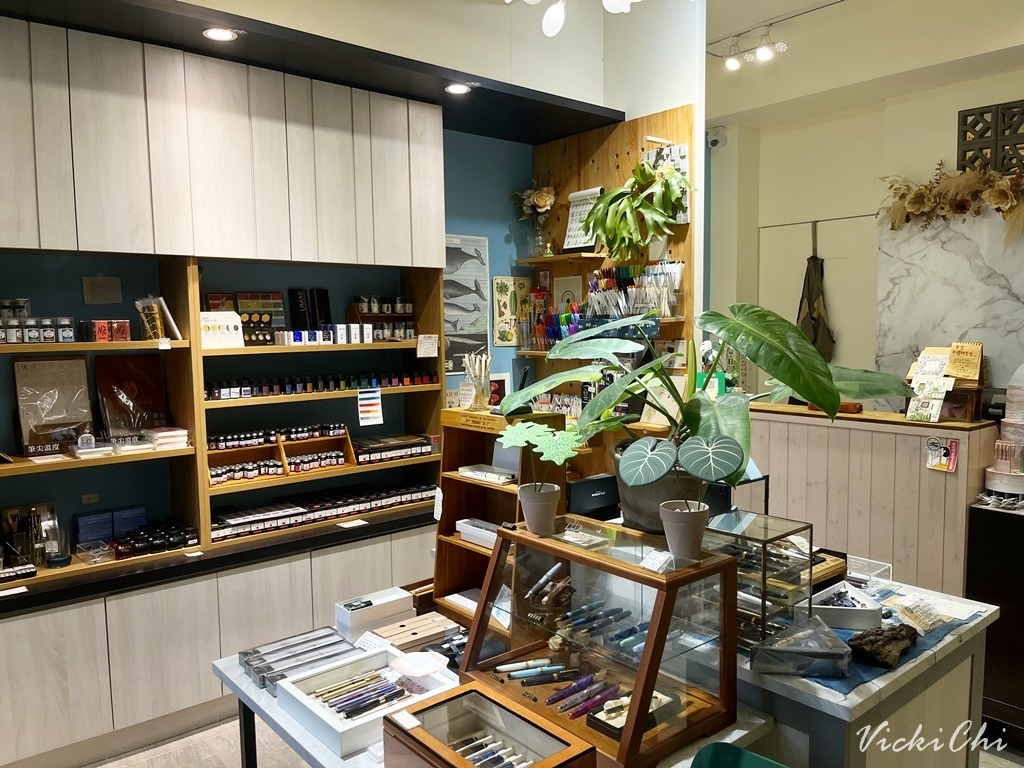 走進去什物,整個空間充滿植栽跟文具,如果每家文具店都有個性的話,什物給我的感覺就是沉穩且安寧的感覺。一進去就中間的桌面擺放許多不同價位的筆類,旁邊的牆櫃則是琳琅滿目的墨水。