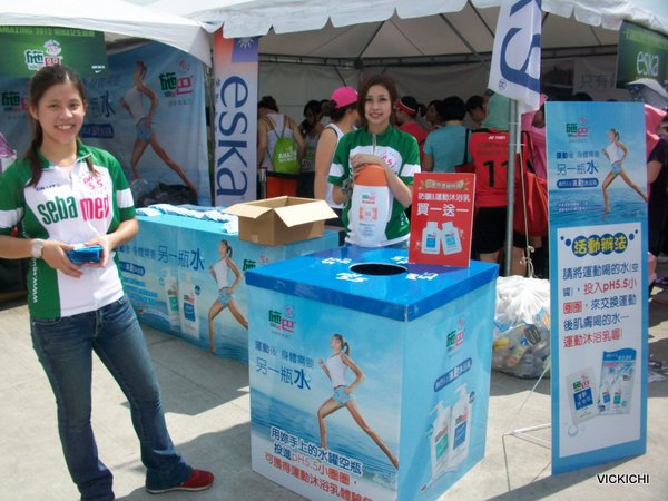投入寶特瓶就可以換運動沐浴乳試用包,達到回收又打了廣告,一舉兩得。