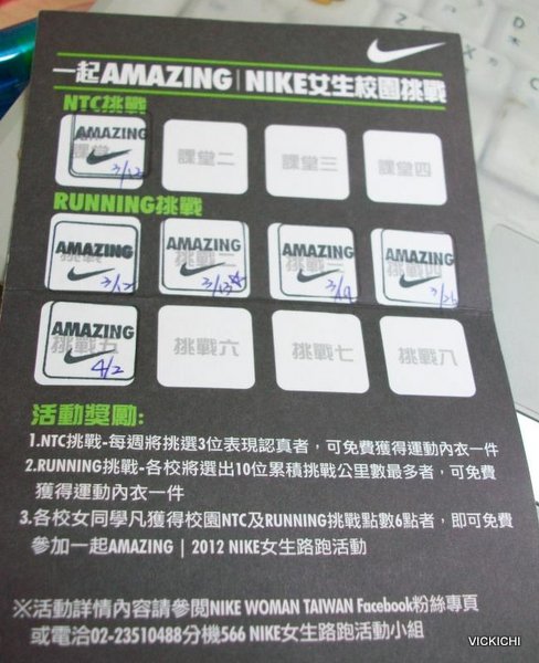 這次是第二次參加路跑活動,第一次參加路跑活動是在4/8的New Balance 13 公里,整整少了7公里。NIKE這次在學校舉辦了校園挑戰賽,挑戰路跑3公里六次或是參加四堂NTC的課程,只要集滿六點就可免費參加今年NIKE女生路跑6公里。