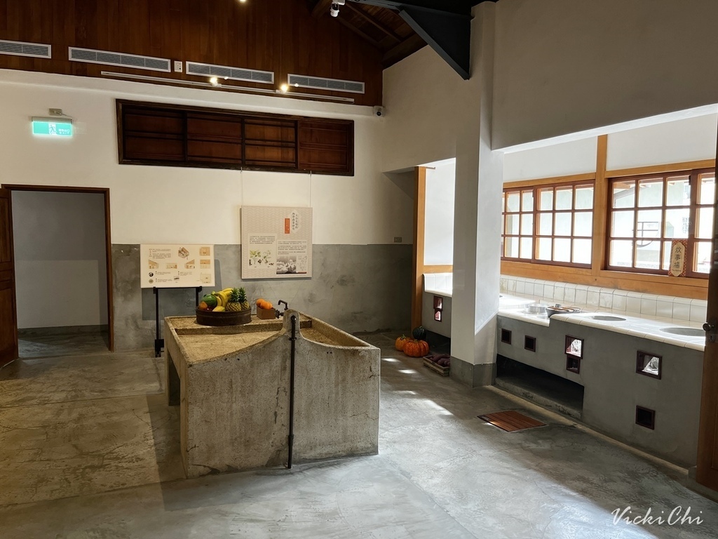 大食堂現在布置成逍遙園的歷史文物區,保留了重建時拆卸下來的原材料及展示逍遙園在戰後,被作為國防部陸海空軍第二總醫院的院長及醫官眷屬的宿舍,逐漸形成行仁新村的陸軍眷舍等另外一段歷史。在這裡最特別的地方就是大食堂的橫梁使用臺灣所產的紅檜,上頭標示台灣總督府營林所的字樣。