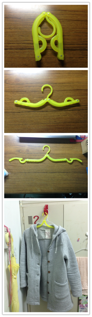 這次買了這種折疊式的曬衣架,發現有點重量的衣服都可以掛起來。而且,攜帶方便還省空間。以後旅行的時候這要帶這五隻曬衣架出去就好了!