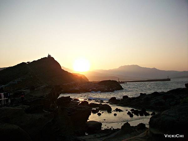 好不容易用最快的走出園區,在天黑之前,看到超級可愛的女王頭娃娃。來野柳看看女王頭,嚐嚐野柳海鮮美食或是來看亞洲第一座海洋世界的海豚表演。野柳地質公園在每年夏天有夜間觀賞活動,把光影打在公園裡的岩石再配合海浪、漁火等,有機會感受海天一色的夜景。