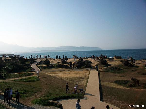 地質公園的王牌,就是雍容尊貴的「女王頭」。此區內可欣賞到仙女鞋、龍頭石、金剛石、地球石等,以及蕈狀岩、團塊、結核所構成的小地景。在女王頭前面,大家排著隊跟他照相,好不容易擠到一個空位拍女王頭了!!!