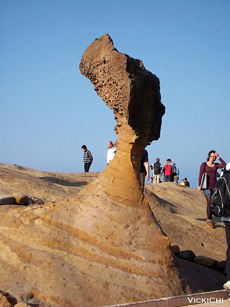 野柳地質公園,可以看到蕈狀岩群、女王頭區及在野柳岬前端的海蝕平台,公園裡面最需要的兩樣東西就是水和想像力,水可以解渴,想像力比較容易欣賞到著名的燭台石、冰淇淋石、薑石、壺穴、溶蝕盤等地景。