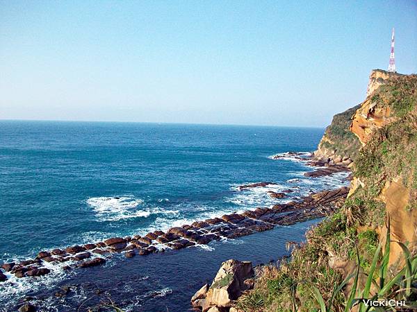 在野柳岬的前端,著名的豆腐岩就在峭壁下方的海蝕平台上。一塊一塊的豆腐岩,超級可愛的。