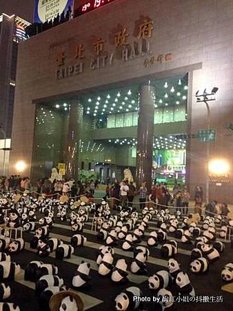 三月初在市政府停留十天時候,下午坐公車看到市政府前面滿滿都是人。晚上趁著上完韓文課後,從西門站坐捷運到國父紀念堂,再從捷運站借U-bike騎車到市政府廣場來湊熱鬧,跟大家一起看紙熊貓們。