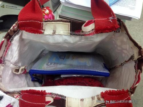 後來發現包包外型看起來雖小,但是容量超大的。除了A4紙無法直放外,所有東西都可以裝~
