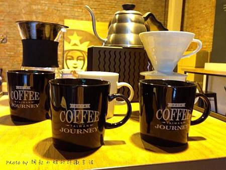 展覽上,星巴克推出印著「2014 Coffee Taiwan Journey」字樣的黑色和白色展覽的限定版馬克杯。