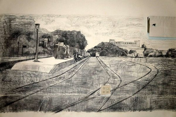 一進門往旁邊看,牆上一幅「台東舊火車站」素描畫,那是小安帶著吉他在花東旅行,途中遇到的其中一個人一個故事。而一個旅行、一個相遇開啟了小步調。