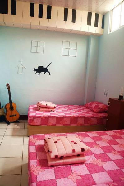 背包房裡同時可以有14個旅友一起入住,下舖有貼心的布簾設計,來入住的旅客可以有隱私空間。每個床位旁邊附有鎖櫃,可以擺放一些比較貴重的東西。如果不習慣跟第一次見面的朋友,可以考慮揪兩個朋友一起選擇三人雅房的「琴房」。