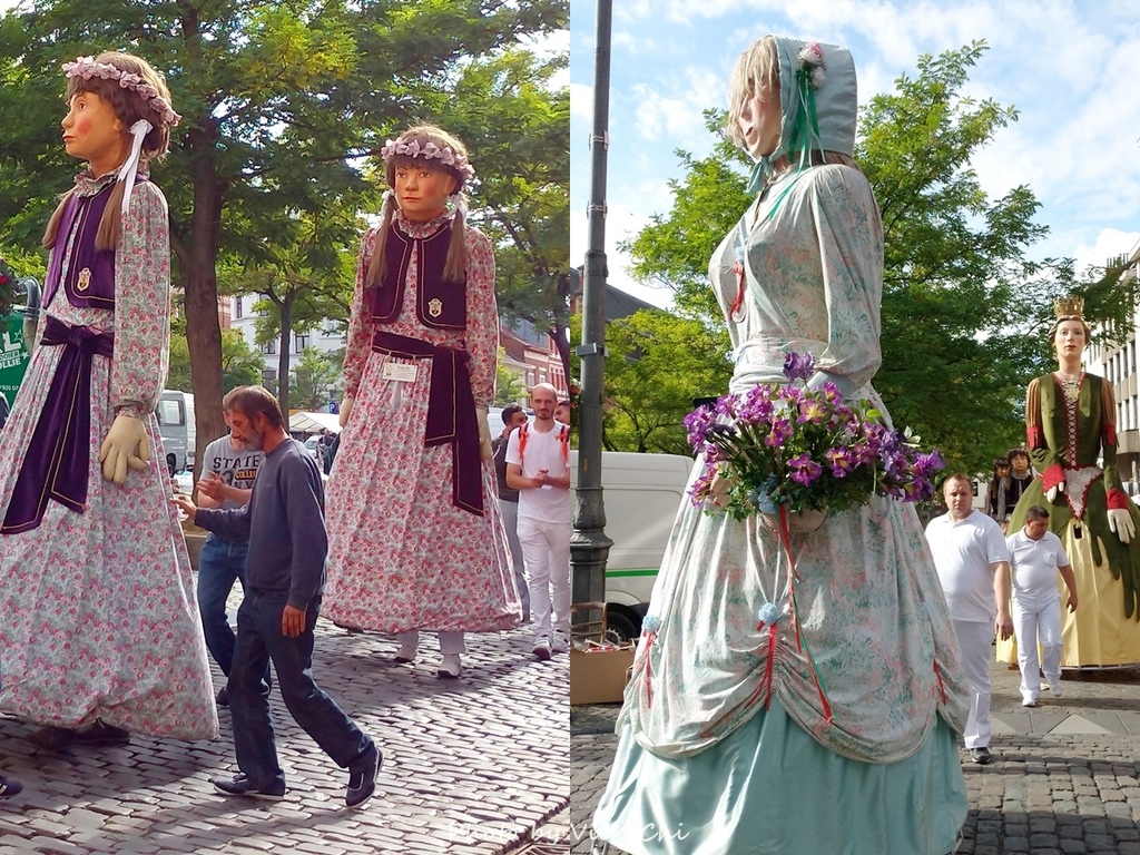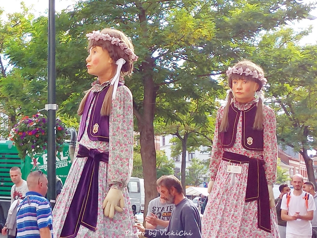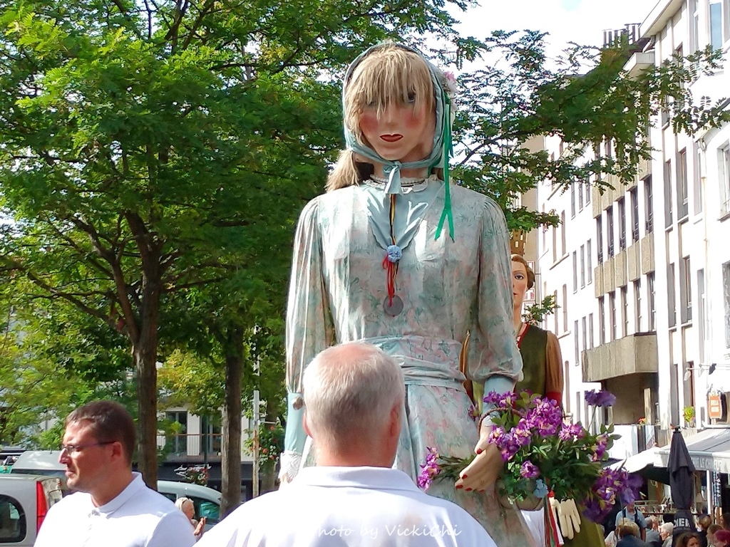 看著巨人遊走街頭上,很像看到《格列佛遊記》的巨人們從書本中跑出來,巨人在布魯塞爾街頭遊走。巨人的軀幹是由薄竹片編成,在用歐洲傳統服飾,通常會有一個人在巨人體內,通過透明圍罩觀察路況和跳舞,有點像廟會或神明出巡繞境時,在神轎前後參駕的巨大神將。