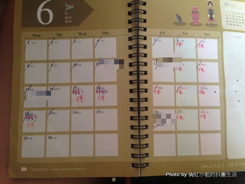 至於月記事的部分,分別紀錄我跟主管的休假日。:)