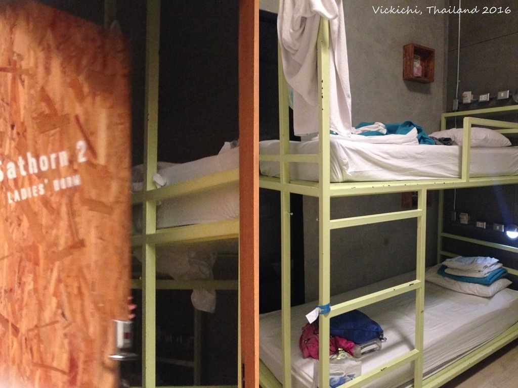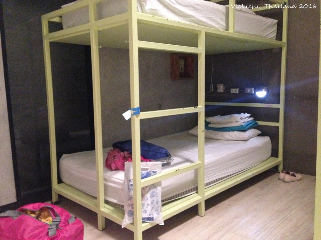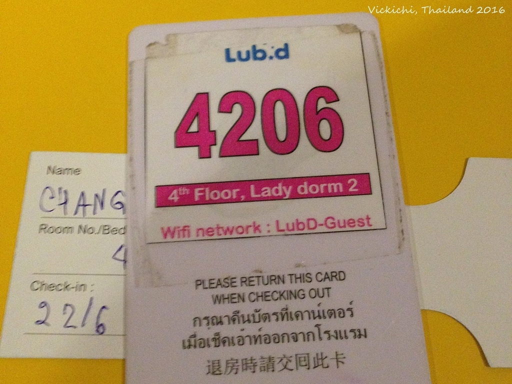 這次入住是8人女生房宿舍,入住的時候,櫃台人員就會給你房卡和床的吊牌,進出的住宿區的時候要刷卡,進出房門也是刷卡。由於住在4樓,這裡沒有電梯,必須扛著行李爬樓梯,還好我這次到曼谷的行李沒有很多。