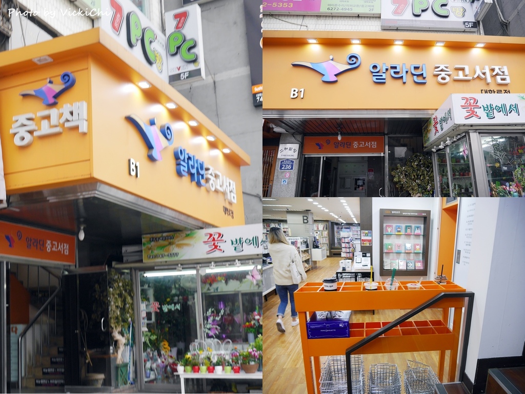 幾次去韓國逛了教保文庫後,發現韓國的書籍比台灣貴了許多,在台灣書很常在打折扣,在這裡的書幾乎是原價販賣,可能網路上會便宜一些或是選擇買二手書,後來朋友推薦我可以到阿拉丁二手書店逛一逛,阿拉丁二手書店在韓國是連鎖的二手書店,就像台灣的茉莉書店,在惠化站和合井站都有看到分店。