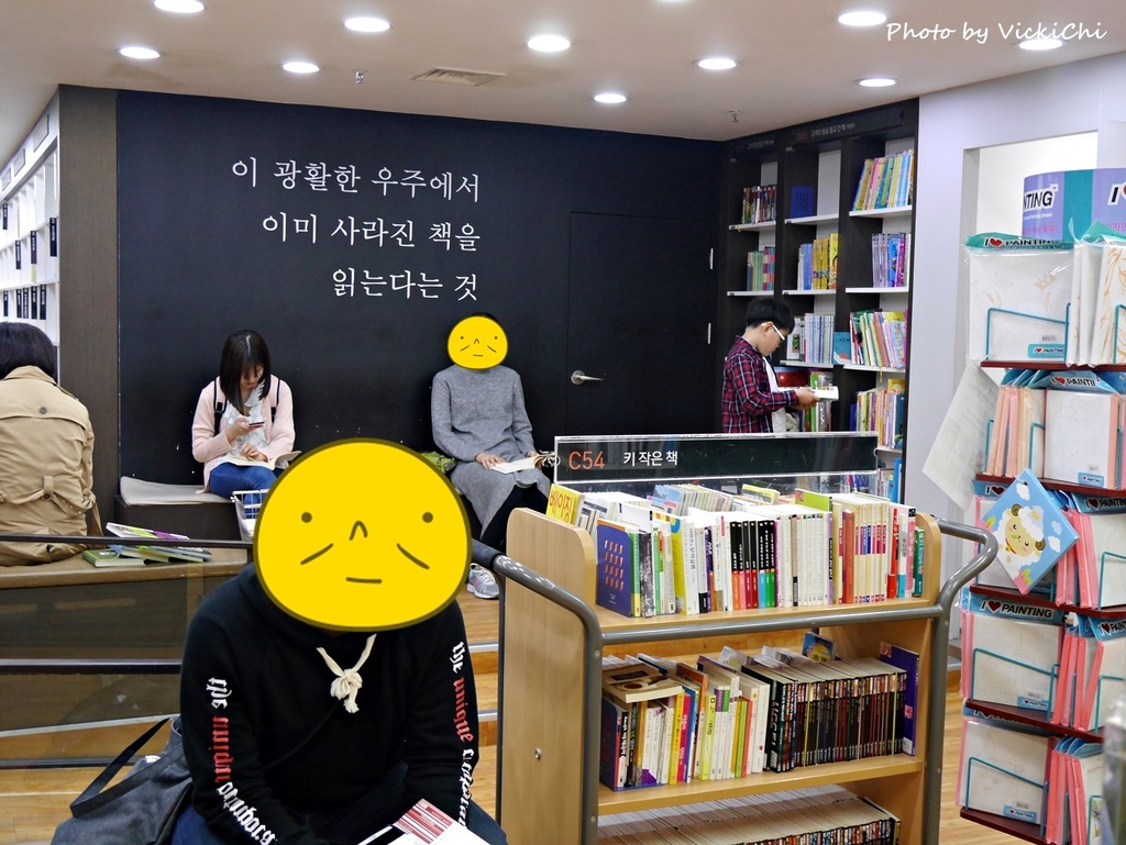 不過,我只有逛了惠化站的分店。惠化站的分店在惠化站的四號出口,往成均館大學方向的左手邊。其實書店很好認,看到神燈就是了!書店在地下一樓,一進到書店就有給客人放置飲料和食物的櫃子,下方還有購物籃。