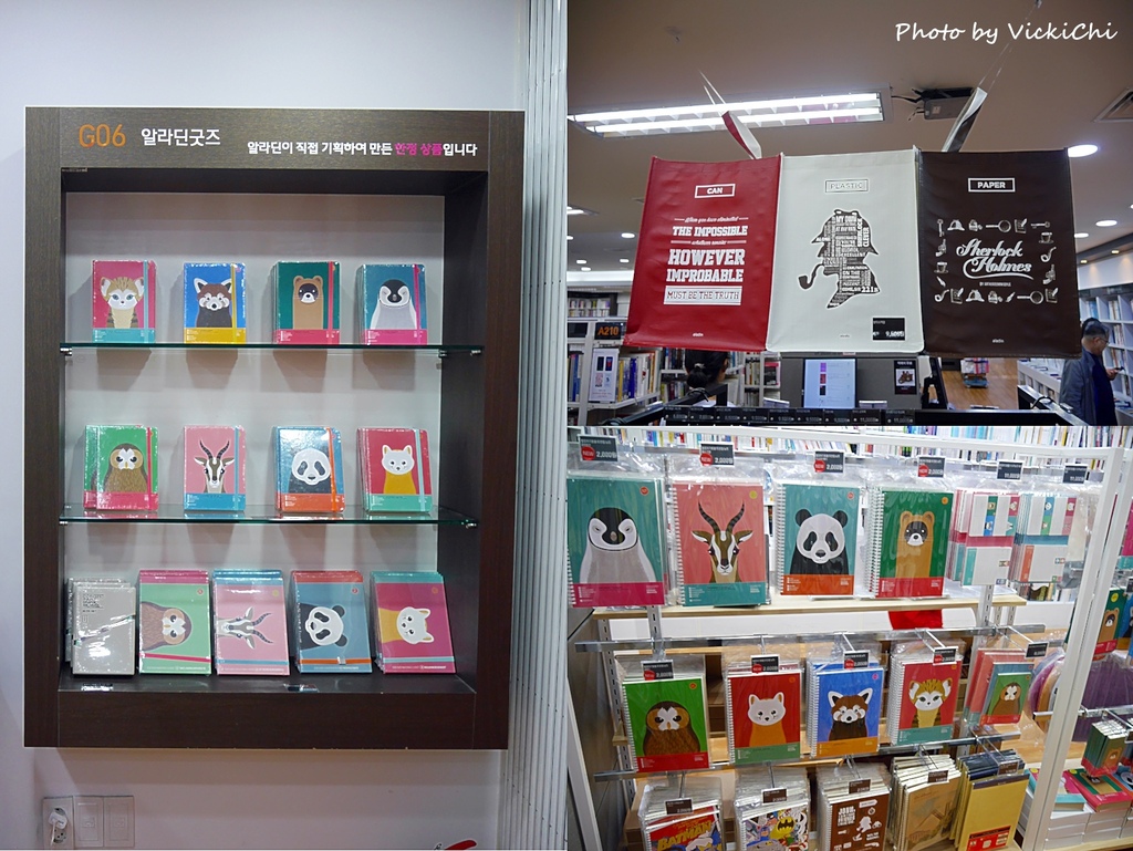 這裡除了賣二手書外,也有販賣可愛的筆記本、手提袋等等商品。這裡也會有很多語學堂使用的教科書,如果在韓國讀書的學生或是正在學習韓文的人,想買幾本韓文書帶回台灣閱讀,我覺得到這裡購買二手書也是不錯的選擇。