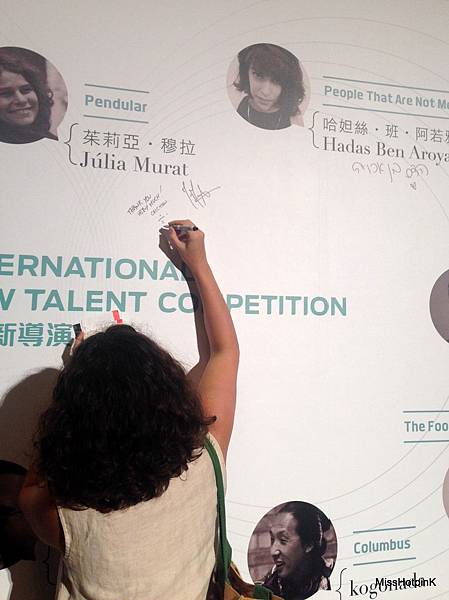 看完電影,沒想到竟然買到導演Júlia Murat出席映後QA的場次,Júlia遠從巴西和現場的觀眾互動分享。影片中囊括的舞蹈、雕塑等多個藝術元素,看得很精采。只可惜當下,我還沒從導演的片子裡面,感受到導演想要表達的訊息。只覺得片中的男主角和男配角長得好像啊!然後在映後會結束,正要離席的時候,發現導演在背板上簽名好可愛喔!所以從後面拍了一張導演簽名的樣子。