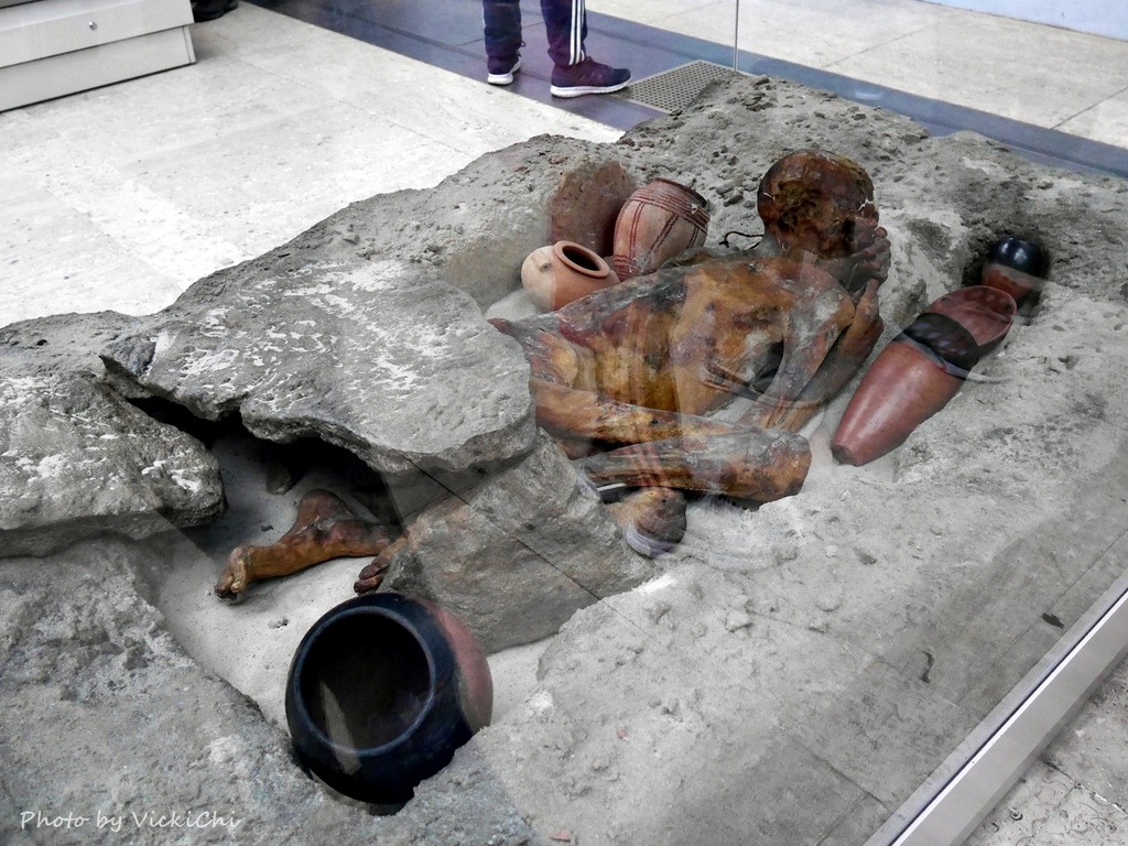 第一眼看到這個展品,覺得超可愛的。這個展品是可以追溯到公元前650-550年,在塞浦路斯的皮爾加(Pyrga)附近發現。可能是述說關於三體戰士的故事之類,不過針對這個故事,沒有找到相關的資訊。倒是認識了賽普勒斯這個國家。原來這個國家位於地中海東部,是歐洲與亞洲之間的一個島國。分為南北賽普,南賽屬於歐盟區,用的是歐元。北賽則屬於土耳其,用的是土耳其里拉。