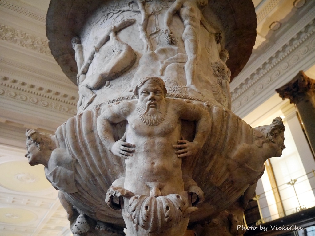 來自希臘的巴特農神殿三角門楣上的眾神雕塑,很有藝術性。這些希臘神殿的雕像都是十八世紀末任英國駐奧托曼帝國大使額爾金伯爵,以「保護文物」名義,將神殿的大理石雕像從希臘運到倫敦,所以現在的巴特農神殿沒有屋頂。