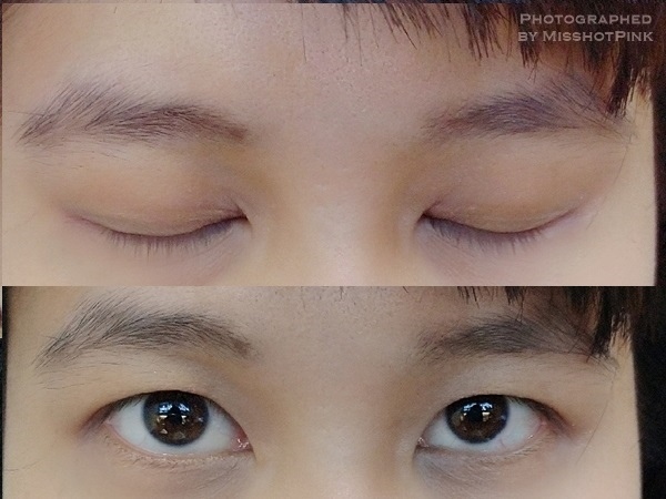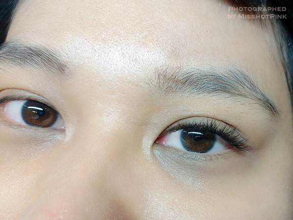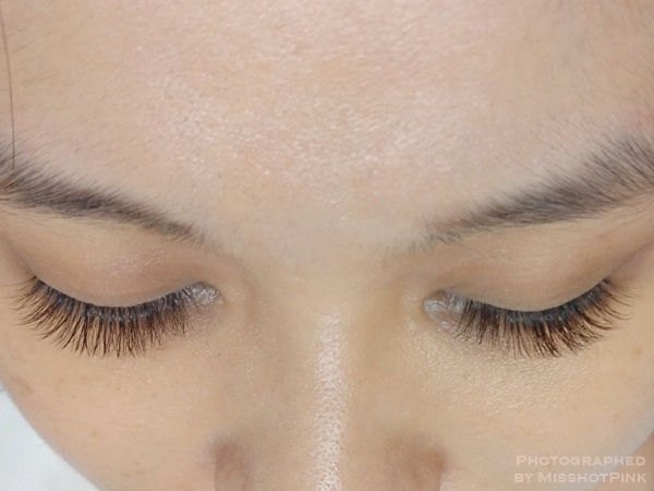 看到睫毛了,連眼線都出來了呢!嘻嘻嘻...兩邊一比較下來,真的差很多。接著,沒過多久,兩眼就接好睫毛了!好開心啊啊啊...