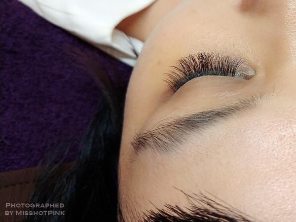 然後,我躺在床上慢慢地慢慢慢慢地就進入休眠狀態。再次清醒,美睫師已經幫我接好一邊的睫毛,哈哈哈。