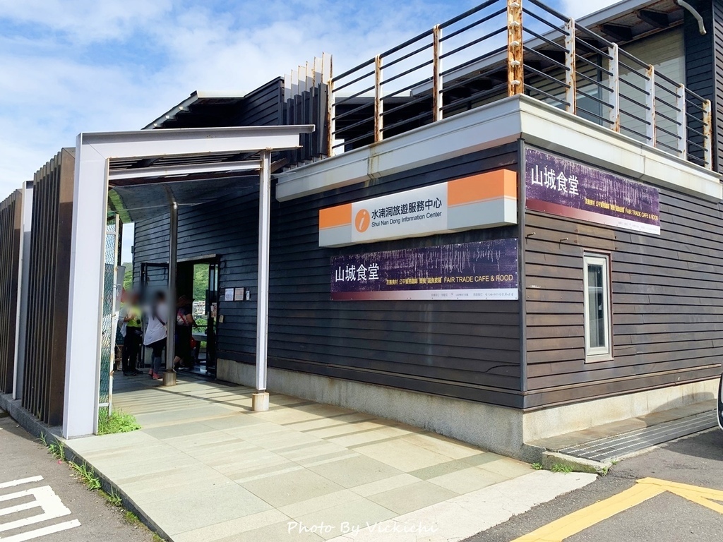 鄰近的山城美館的山城食堂,同時也是水湳洞旅遊服務中心。過往是礦工食堂,現在成了旅客的食堂。在這裡可以一邊看海景看山景還能享用特色饅頭與豆漿等小農食材餐點。這裡不提供外帶服務,就是要你在食堂停留一下,好好休息和放鬆,休息好了再度啟程到下一個地方。