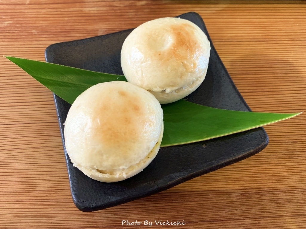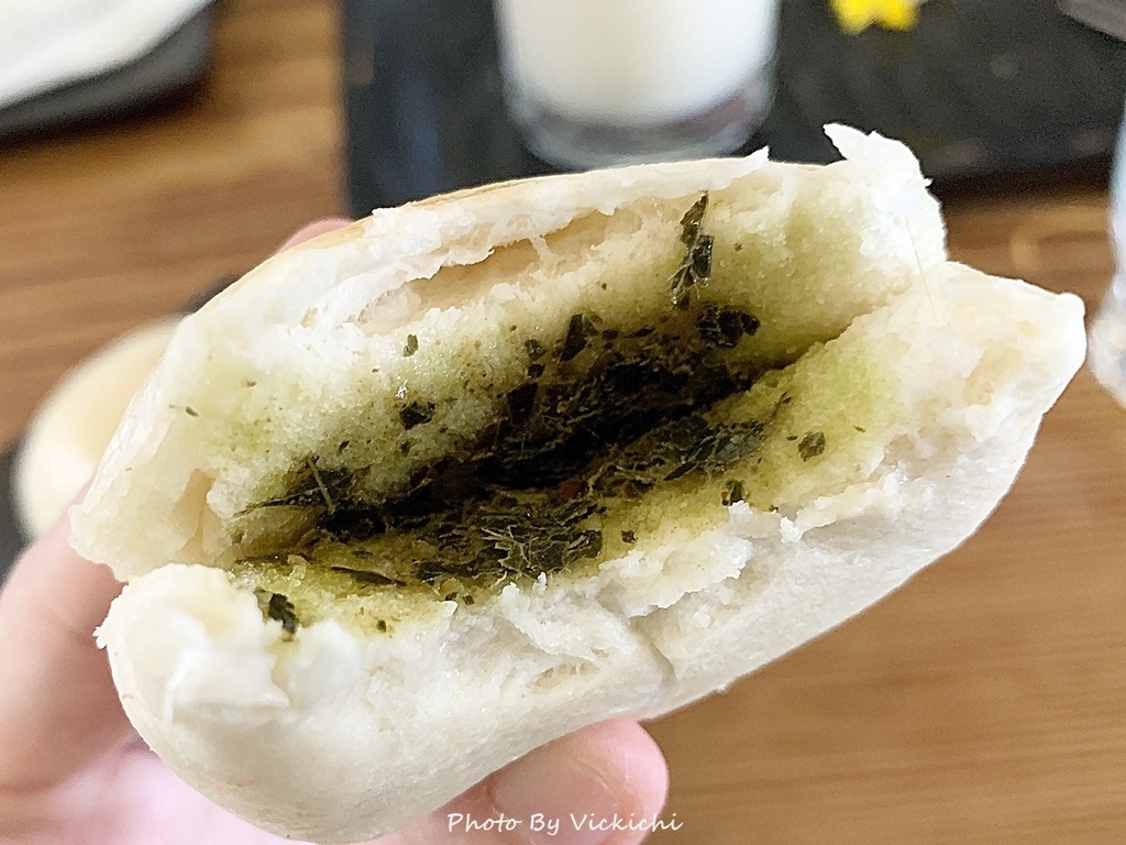 使用月桂葉盛放的烤饅頭,外酥內軟別具風味。饅頭夾層的特製香椿醬,特別的鹹香味。
