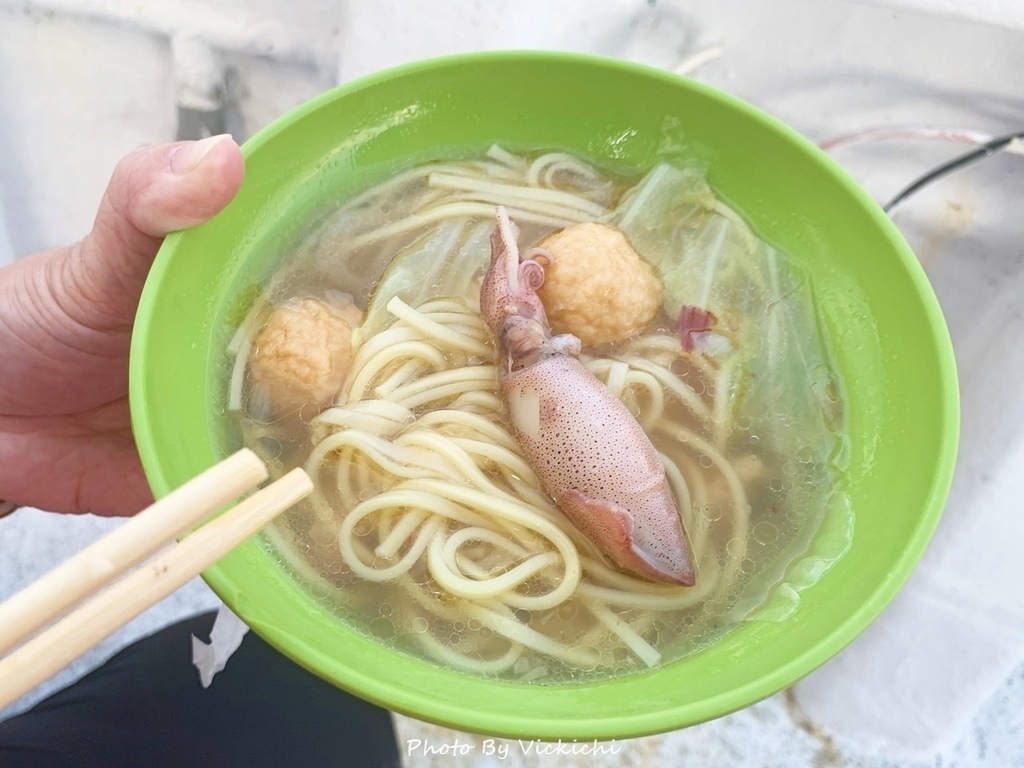 我在船上享用著船料理,一碗船員精心烹煮的海鮮麵,平凡無奇的海鮮麵在海上特別好吃。