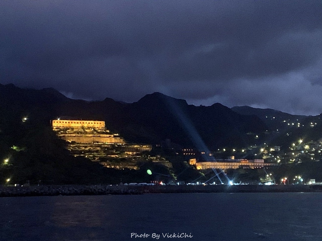 站在船上吹著海風,終於等著天色暗下來,看著燈光打在十三層遺址上,琥珀色光的十三層遺址,感受到十三層過往的黃金礦業風華。十三層遺址從9/13正式點燈後,每個晚上的六點到九點,十三層遺址就會閃閃發光。白天和晚上,十三層遺址展現不同的面貌,在海上遠看真的很壯觀!