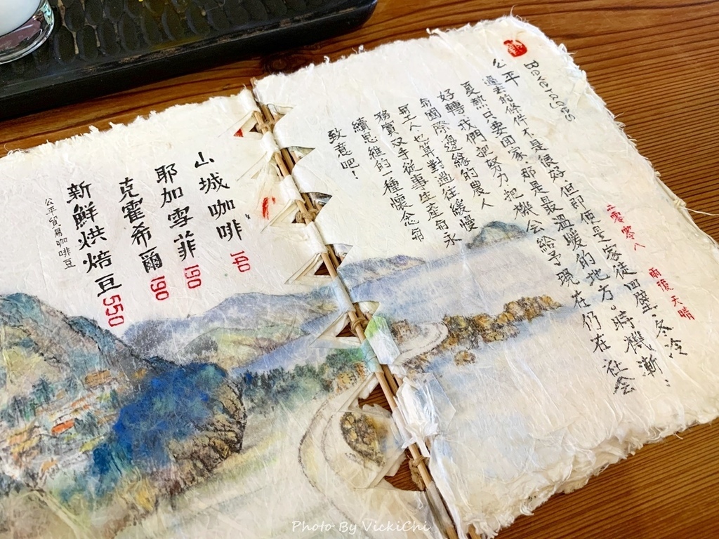 食堂提供各式各樣的輕食、飲品,點餐本上除了有菜單,旁邊還有一段小短文。