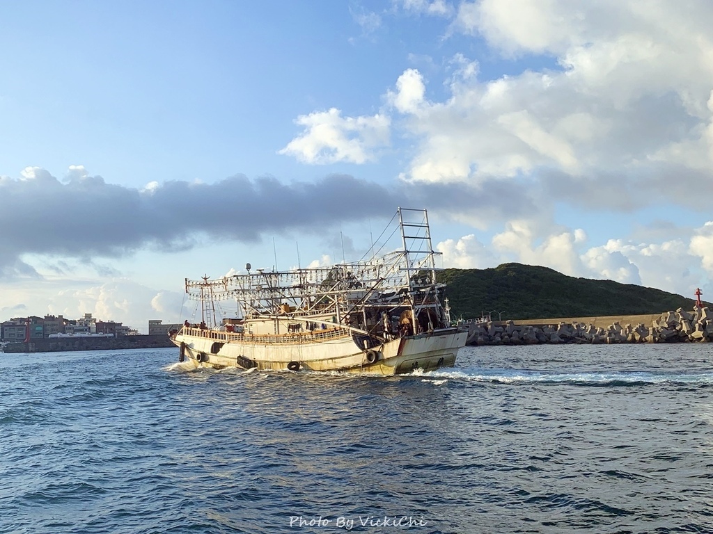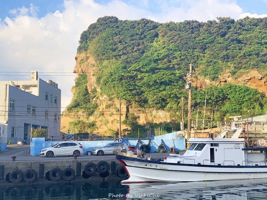 這次要在船上觀看十三層遺址點燈,在等上船的空檔,前往深澳漁港附近散步,這裡是國內海釣船數量最多的漁港,從這裡可以看到酋長岩的左邊臉頰,以前我都是只有在船上看他的右臉,這次在陸地上看著他的左臉。