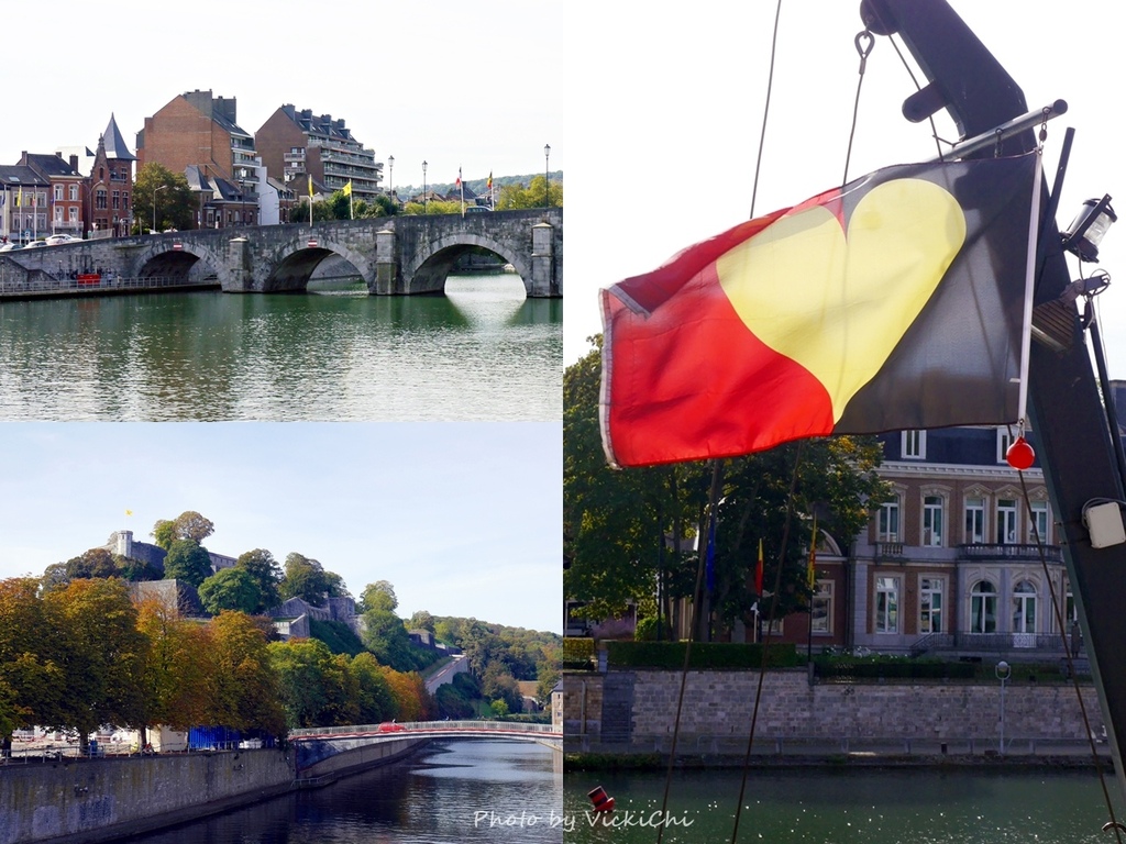 過了橋就是那慕爾城堡,這裡有些地方在施工,看到河邊從車站走到這邊約15分鐘的路程。在河邊看到掛著愛心的小旗子,實在太可愛了!