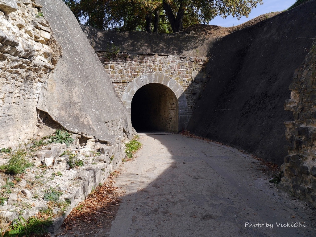 我們沿著路走,有路就走,我們的目標就是走回市區。於是,我們走進了城堡內的地道,陽光完全照不進來,裡面一樣漆黑。其實我們也不曉得走到哪裡?