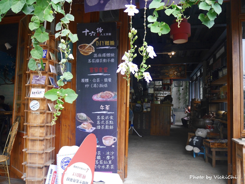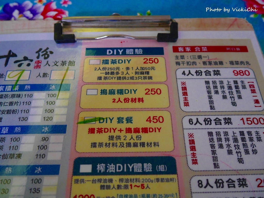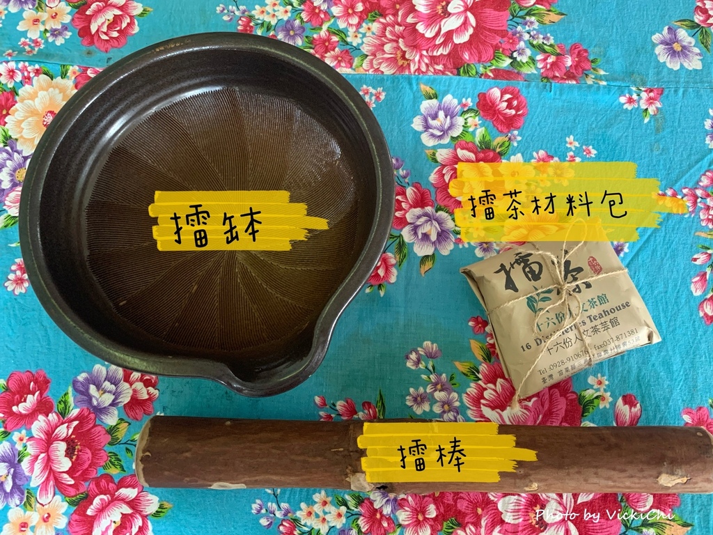 在十六份人文茶館,可以選擇客家擂茶、麻糬、榨苦茶油不同體驗的方案,客家擂茶、麻糬體驗是以兩人份為主,適合朋友一起來體驗。這次選擇客家擂茶和麻糬DIY的套組體驗,獨自前往的我,下午茶吃超飽的,哈哈。