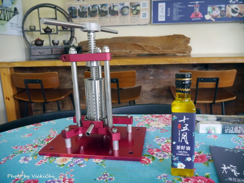 苦茶油是台灣近年來討論度很高的油品,茶館還有榨苦茶油的體驗課程。榨油機是老闆為了體驗而開發設計的,可以在這裡體DIY用冷壓法方式榨出苦茶油。