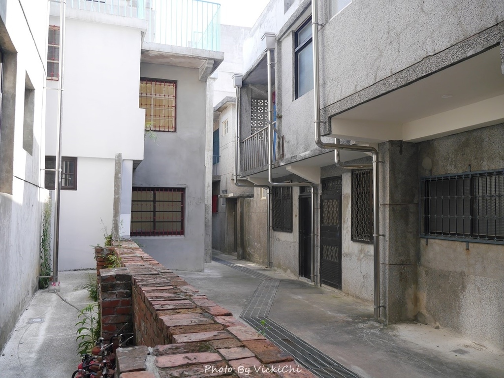 在遊客中心外面就是後棟的丙級的眷舍,這裡的巷子特別窄,窄巷是眷村裡的一大特色,早期其實是對門相望的房舍,後因住家使用空間的需求,村民紛紛想盡辦法將前後院擴建,經過長期的更改及擴建,巷道就越來越窄,形成連棟接壁、緊緊相連的樣貌,有些窗戶一打開就可以看到鄰居。