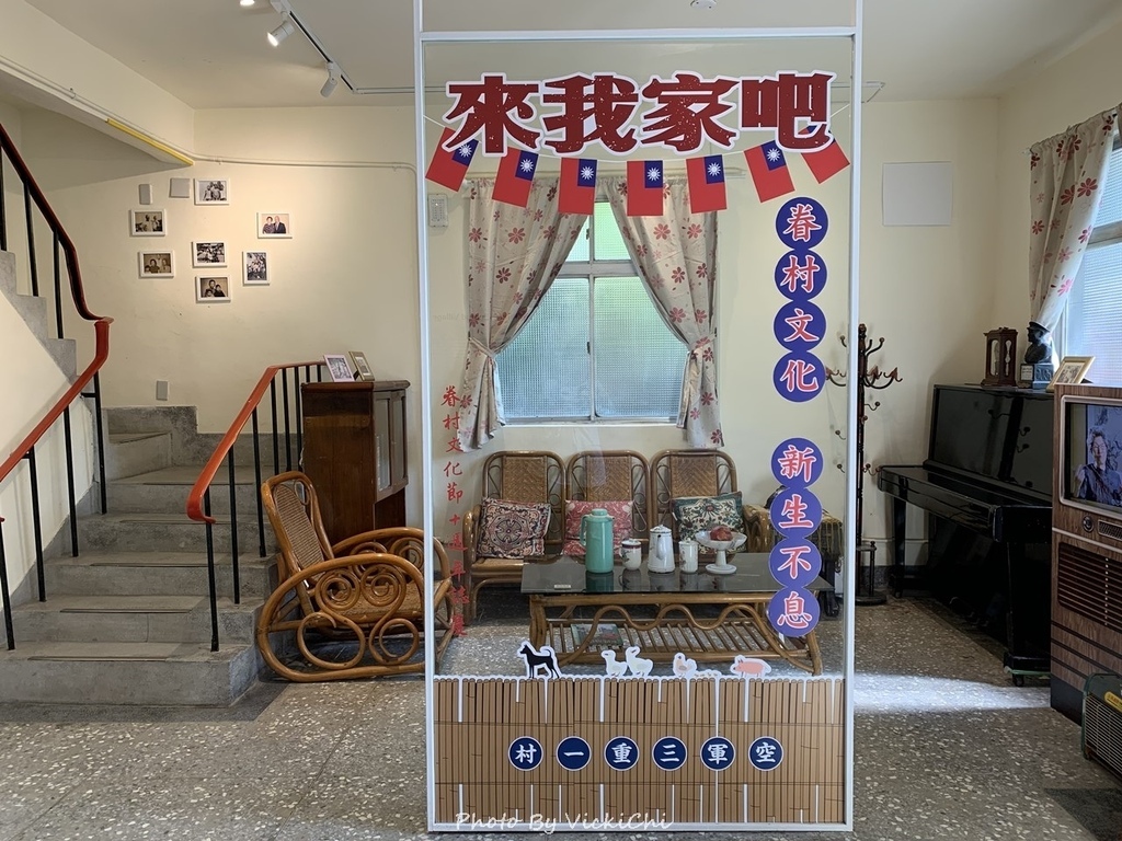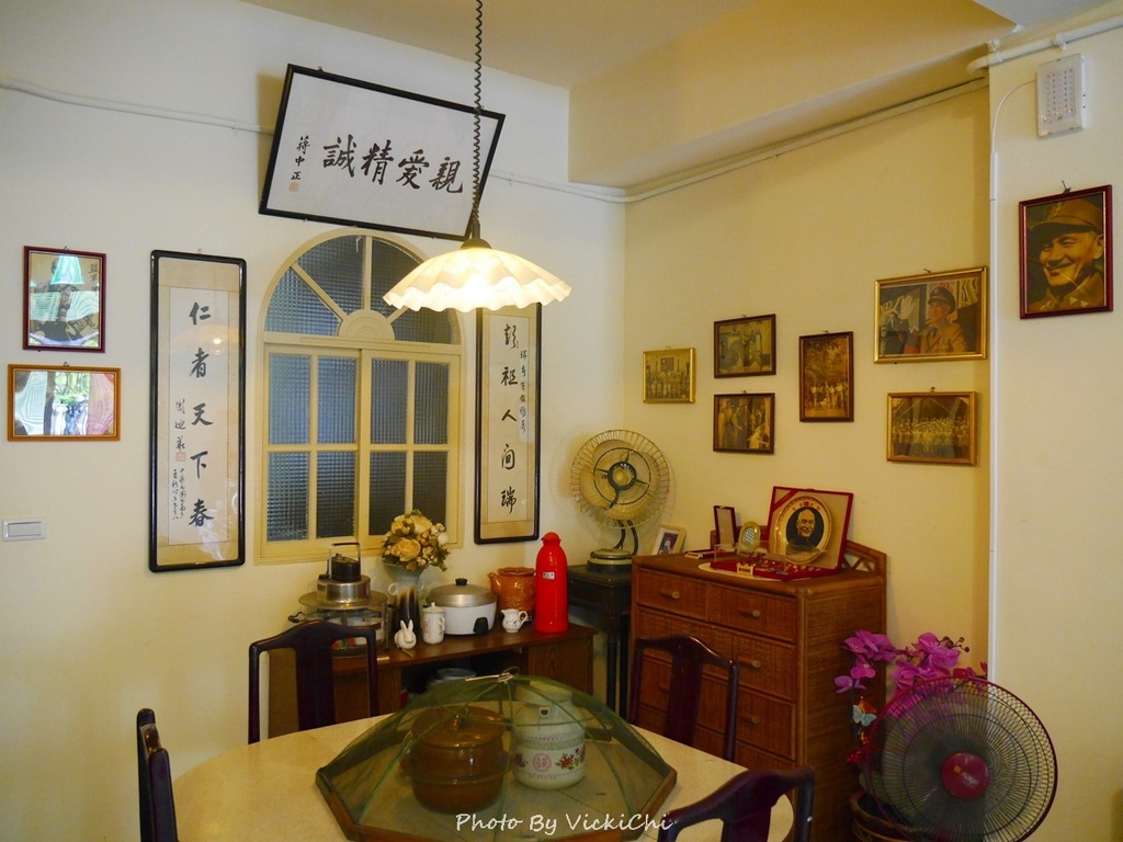 村長家客廳的東西其實不是他們家的,而是為了展示而放入的。牆上的蔣中正照片,向大家敘述那個時代的時空背景,蔣中正的大頭照往往掛在家庭客廳中最顯眼的位置。其實基本上眷村裡面很少人會放蔣中正其他的照片(除了題字以外...),頂多放張他的大頭照。