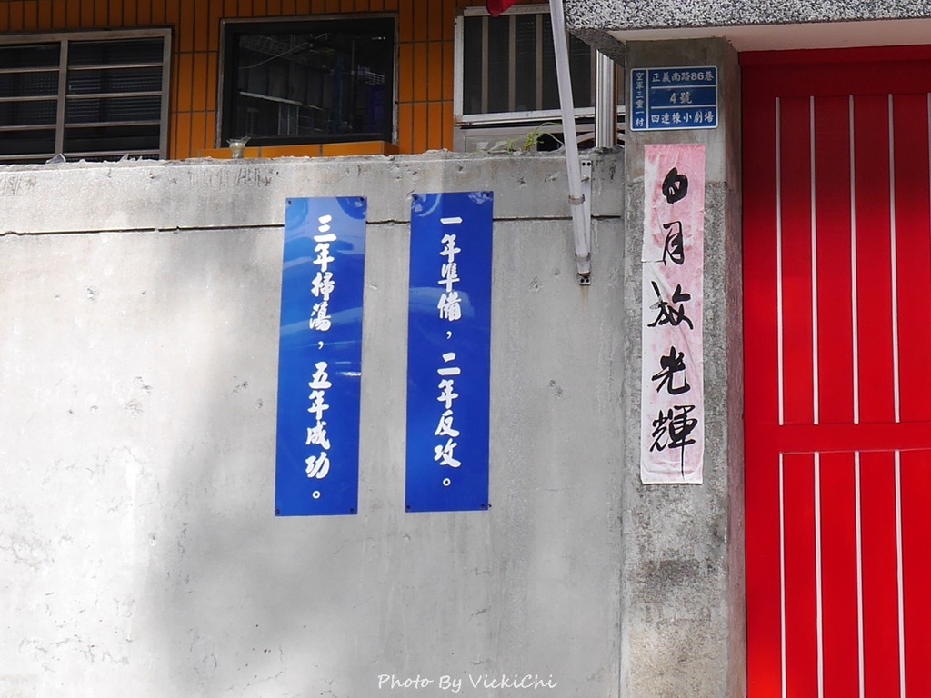 走入眷村,牆壁上貼著「一年準備、二年反攻、三年掃蕩、五年成功」反共標語,有種時光倒流到兩岸武力對峙的時期。當時懷抱著回鄉的眷村第一代,最後被現實強迫在異鄉落地生根,異鄉也就變故鄉。