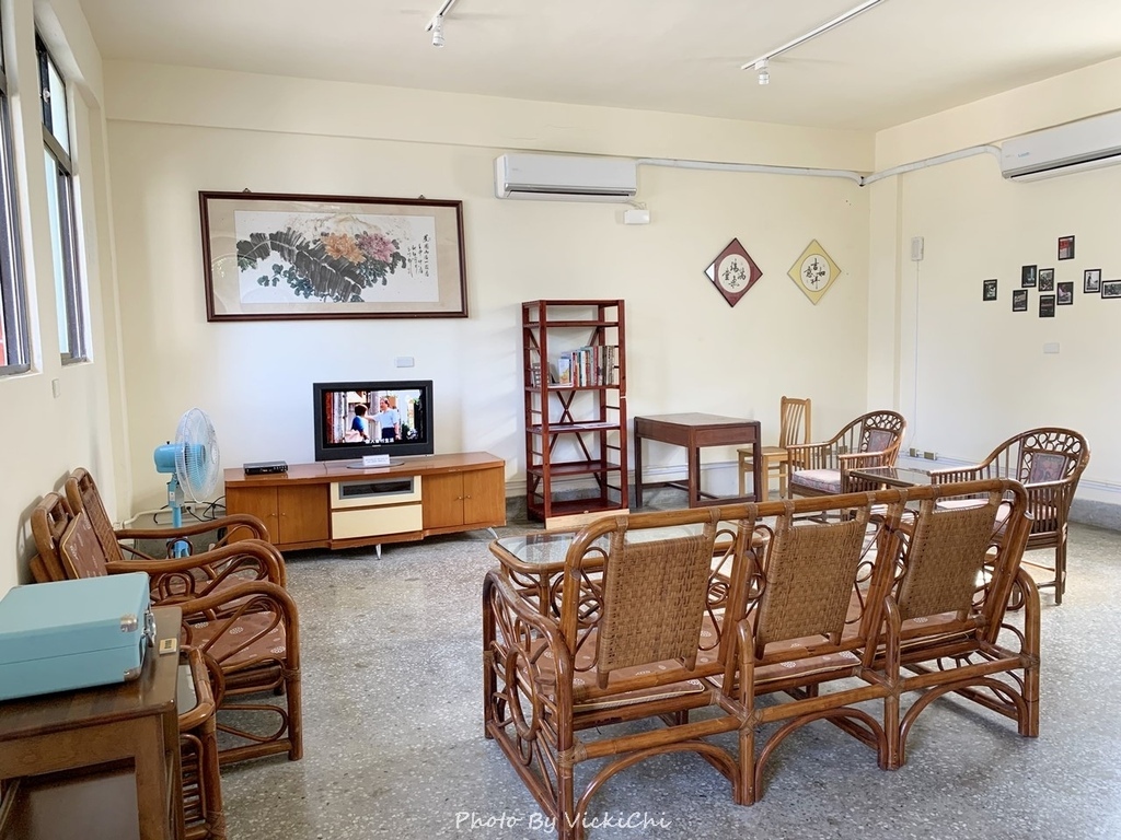 旁邊的還有一間屋子,現在規劃成休憩小屋。這裡可以坐著休息、自己也可以帶點食物在這裡吃,外面有垃圾桶可以丟垃圾。這裡還有一個大桌子,來的時候剛好碰到志工們在這裡聊天喝茶聚會。