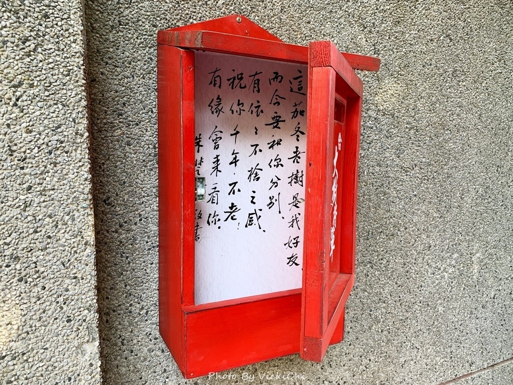 這裡原是配給聯勤總司令部劉鑫鑣的特級眷舍,後來他的女婿朱楚雲也住在這裡過,現在規劃成一村故事館。朱爺爺在搬家前,為了庭院裡的笳苳樹在紅色的信箱裡面,留了一封給大樹將軍的信。