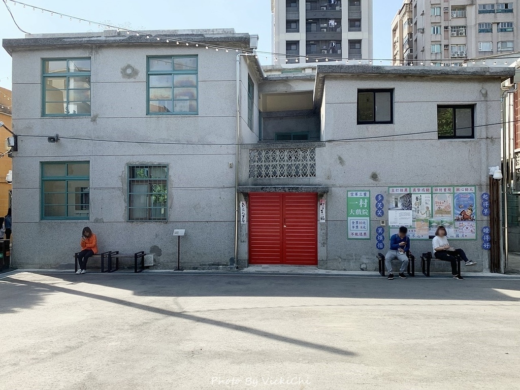 入口的四連棟小劇場,其實在重整眷村的時候,因為拆除側牆與背牆而登上新聞,把原來四戶打通成一個空間,作為小型劇場使用。這裡時常舉辦活動,同時也提供租借使用。連著小劇場的後面就是洗手間,而對面5號眷舍則是一村放映室,播放口述歷史的紀錄片,從中瞭解空軍三重一村的歷史與生活。